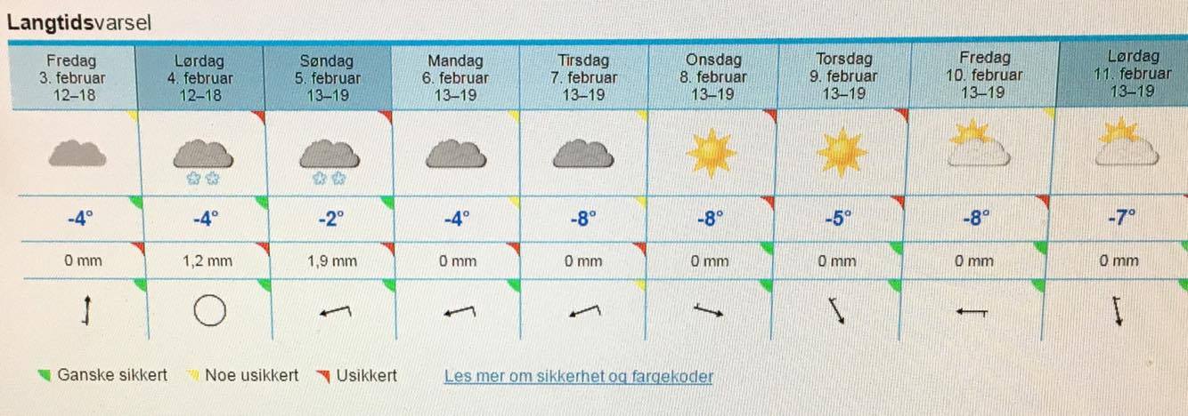 I løpet av helgen så skal vi endelig få litt snø! Det er fortsatt krevende forhold for løypekjørerne, men i morgen tidlig så kjører de igjennom de løypene som ble kjørt forrige helg.
